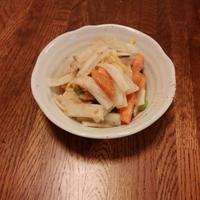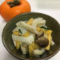 柿の甘みとさっぱりした味付けで美味しかったです!カボスがあったのでゆずの代わりに。塩もみした大根で塩分しっかりだったので味付けの塩分は抜いてます。