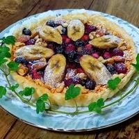 市販のパイシートで手軽に作れるのが魅力的です。中身はベリー系のジャムとバナナの組み合わせで、酸味と甘みのバランスが絶妙。溶かしバターを混ぜた砕きビスケットのサクサクとした食感が楽しめます。カスタードクリームを加えたり、さくらんぼやミラベルなど様々なジャムで作れるアレンジ自在なレシピ。170度30分でしっかり焼き上げれば、手作りパイの出来上がりです。