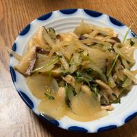 - 6 3を入れてしんなりするまで中火で炒めたら、1、2を加えしいたけがしんなりするまで炒めます。