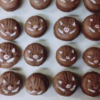 アイシングでイノシシの顔をデコレーションした可愛らしいチョコレートマカロン紹介です。デザートやお茶菓子、ラッピングしてプレゼントなどにも喜ばれる事間違いなしです。ぜひ、作ってみてはいかがでしょうか。