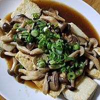 賞味期限ギリギリのお豆腐を使って作りました。エリンギがなかったので、しめじ多め。胡麻油が効いていておいしく出来上がりました。おつまみにもいい😆