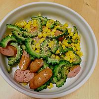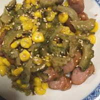 ゴーヤとソーセージ、コーンを炒めた簡単レシピです。味付けは塩と黒こしょうのみでシンプルに仕上げています。ゴーヤの苦みがほんのり効いていて、お酒のおつまみにもおすすめです。美味しいのでぜひお試しくださいね。
