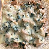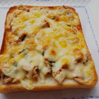 - 3 食パンに2を乗せ、オーブントースターでこんがりするまで焼き、完成です。