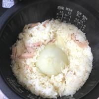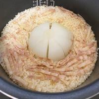 調味料を入れる前に1時間ほど浸水時間を設けるとお米の芯も残らずちょうどいい食感になります!調味料入れたお水だと米が水を吸わないので注意<※その水は捨てて下さい >新玉ねぎは丸ごとではなく1口大に切って、ベーコン多めで作りました。レシピ通りだとあっさりというかほぼ味は無いのでしっかり味が欲しいなら水は少なめで!しっかりお米を浸しておけば新玉ねぎからも水分出るのでレシピより少ない水でも問題ないと思います。私は米2合にもち麦いれて、調味料と具材を入れてから3合のメモリくらいで炊きました。好みの炊き加減で上手くできた!