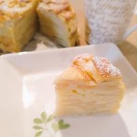 シャキシャキとしたりんごの食感が楽しめるケーキです。切って混ぜて焼くだけの簡単レシピながら、断面の美しい層が特徴的。生地はプリンのようなカスタード風味でしっとりもちもち。甘さは控えめですが、りんごの自然な甘みが活きています。シナモンやアーモンドをトッピングすると香り豊かな仕上がりに。冷やして食べるとより一層美味しく楽しめます。