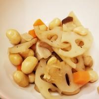 大豆やれんこん、しいたけ、こんにゃくなど食物繊維たっぷりの具材が、優しい甘みと醤油の風味で染み染みに仕上がります。材料を切って水にさらしておけば、あとは煮込むだけのホッとする家庭の味。おかずはもちろん、お弁当の常備菜としても重宝します。枝豆や厚揚げ、ごぼうなどアレンジも自在で、冷凍保存もできる便利な一品です。