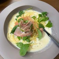 濃厚なクリームスープが水菜と生ハムにとっても合うパスタです。スープも一緒に味わえるので、さっぱりといただけます!お好みで生ハムと水菜の量を増やして入れていただいても大丈夫ですよ。ぜひ試してみてください。