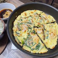 ニラとエビのチーズ入りチヂミのご紹介です。たっぷりのニラが入ったチヂミにチーズを加えて焼き上げました。プリプリのエビの風味もとてもよく合います。ぜひお試しください。