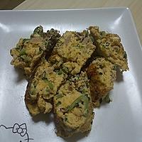 冷凍してたゴーヤで作りました。普通のフライパンだと柔らかかったのでイビツですが美味しかったです。