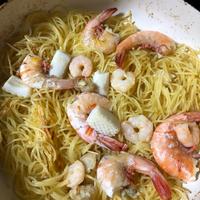 1.6のパスタだったので水を足しゆで時間は少しかかりましたがエビを倍以上入れ塩もやや多めにしました。こういう料理は初めて作りましたが簡単で美味しかったので、外食した気分になりました。余裕がなく写メしてませんでした(*^^*)