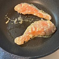 - 3 中火で熱したフライパンにサラダ油をひき、2の両面を2分ほど焼き鮭に火が通ったら火から下ろします。