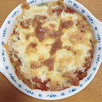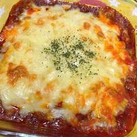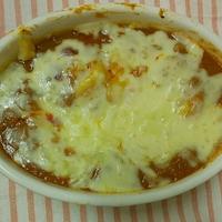 - 3 グラタン皿にミートソース、1のじゃがいも、チーズを乗せてトースターで8分、チーズがこんがりになったら完成です。