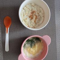 7、8ヶ月ごろ(中期)を目安にしています。 舌でつぶせる絹ごし豆腐くらいの固さを目安に、お子様の様子に合わせて食材の大きさや固さ、量は調整してください。 初めての食材を与えるときは食物アレルギーに注意し、複数の食材といっしょに与えることはせず、小さじ1程度の量を午前中に与え、食後の様子を見守ってください。アレルギーのリスクがある場合やアレルギーと診断されている場合は、医師の指導に従ってください。 今回は牛乳を使用しましたが、お子様に合わせて調乳済みミルクでも代用いただけます。 ※離乳食に関するご質問は現在お受けしておりません。あらかじめご了承ください。