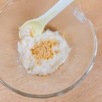 離乳食7、8ヶ月ごろ(中期)から始められる、シンプルな牛乳で作るミルクパンがゆのご紹介です。きな粉の香ばしさと牛乳の甘みでおいしくいただけます。牛乳は必ず加熱してから使用してくださいね。かぼちゃやりんごなどのペーストを加えてもおいしいですよ