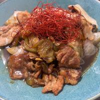 - 6 4を入れ、豚バラ肉に火が通るまで中火で炒め、1、2を入れ炒め合わせます。