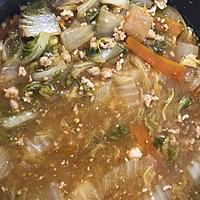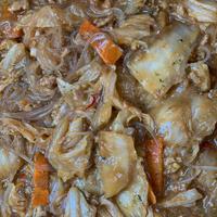 白菜から水が出るので加える水の量は適当に減らしました。