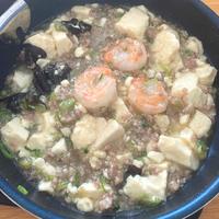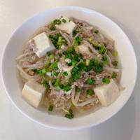 包丁を使いたくなくてスプーンで豆腐を分けたため見た目が悪いですが、美味しいです!もやしなし、冷凍エビとキクラゲを入れました。温まります。
