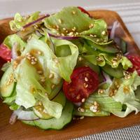 レタスときゅうりの中華風サラダの紹介です。ごま油とニンニクのコクがあるしっかり味のドレッシングでお箸がすすむサラダですよ。具材はお好みでアレンジして、ぜひお試しくださいね。