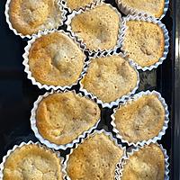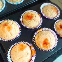 バターの代わりにココナッツオイル、砂糖の代わりにジャムを増量、HMの代わりにお豆腐と米粉と豆乳で代用しました。冷めても美味しいしっとりマフィンでした!上にジャムをトッピングしてます。