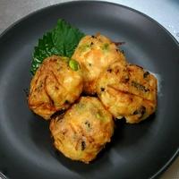 大葉を中に混ぜました。香りが良くてカリふわに。少し揚げすぎましたが、美味しかったです。簡単なのでまた作ります。