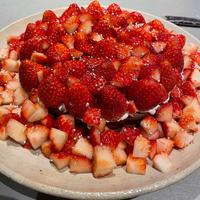 - 1 生地用のいちごとトッピング用のいちごを5mm程度の角切りにします。