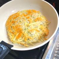 - 4 中火に熱したフライパンにオリーブオイルをひき、3を入れてフライ返しで生地を押さえながら形を整え、じゃがいもに火が通るまで5分程焼きます。