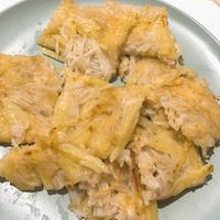 ゆでたそうめんとじゃがいもを組み合わせて、ガレットにアレンジしてみました。そうめんとじゃがいものそれぞれの食感と旨味がチーズとよく合います。そのままでもおいしく頂けますが、お好みでめんつゆをかけてもおいしいです。ぜひお試しくださいね。