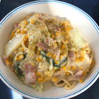 白菜とベーコンとコーンの相性抜群、クリームベースのスープスパゲティです。ベーコンを入れることによって、旨味がアップします。温かいスープで寒い日にもぴったりの一品です。おいしいのでぜひ作ってみてください。