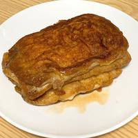 油揚げで作るミルフィーユ風煮です。豚バラ肉のコクとチーズが、味が染み込んだ油揚げによく合います。ごはんとの相性も良いですし、お酒のおつまみとしても最適ですよ。チーズをはみ出ない程度に多めに入れると美味しいです。