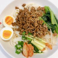 きゅうり、もやし、オクラ、キムチを加え、ひき肉の味付けをコチュジャンにしました!
