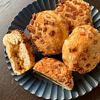 ホットケーキミックスとヨーグルトで作る、サクサクもっちり食感のカレーパンです。焼きたては特に香ばしく、揚げドーナツのような甘みと、スパイシーなカレーが絶妙なハーモニーを奏でます。生地は少し甘めですが、辛口カレーと相性抜群。低温でじっくり揚げるのがポイントで、中までしっかり火が通ります。チーズを加えたり、パン粉をつけてカリカリに仕上げたりと、アレンジも楽しめます。