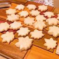 冷蔵庫で1時間程冷やしてから型抜きしましたが途中で生地が柔らかくなってしまったので、残りの生地は冷凍庫で30分程冷やしたら生地が柔らかくなることなくスムーズに型抜きできました。ふっくらした見た目ですが、食感は思っていたよりもずっとサクサクでとても美味しいです。生地作りから焼き上がりまで、メープルシロップがとてもいい香りでした。