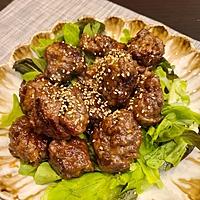 牛もも肉をミートボール風に丸めた、コロンとしたかわいらしい生姜焼きのご紹介です。甘辛い味わいと生姜の香りが食欲をそそり、どんどんお箸が進みますよ。ぜひお試しくださいね。