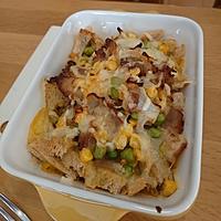 - 5 グラタン皿にちぎったパンをいれ1を上からかけます