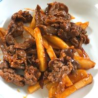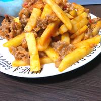 牛こまとじゃがいものピリ辛ケチャップ炒め レシピ・作り方