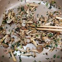 - 準備 しめじの石づきは切り落しておきます。ニラの根本は切っておきます。