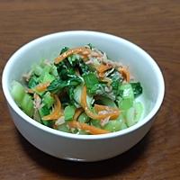 人参を入れて彩りよくしてみました。あえてツナのオイルを入れコクをたし鶏ガラスープの素とマッチングー👍
