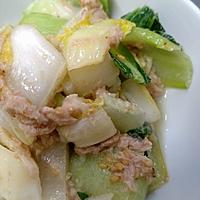 - 準備 チンゲン菜は根元を切り落としておきます。ツナ油漬けは油を切っておきます。