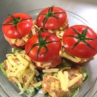 トマトに沢山お肉を詰めて