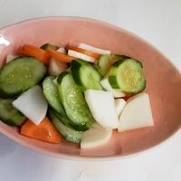 No.659 本当は3日前に作りましたが、今日投稿です💦今回、大根は無かったので、省きました😅買ったほうが良かったかも...。😭でも、人参ときゅうりだけでもとっても美味しかったです😍最初、塩水につけたら仕上がりの味がすごい濃くなるかもしれないと、ちょっと心配だったので、塩水を味見しながら調節しました😄そしたら、ちょうどいい味に仕上がり、とても満足です☺️そして、にんじんときゅうり、どちらともすごい食感が良くて、にんじんが甘いのが良かったです😆家族にも大好評だったので、また作りたいです✨