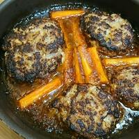 オーブンを使用して作るハンバーグです。 大きいハンバーグは火が通りきらないことがありますが、取っ手が取れるティファールを使用し、そのままオーブンに入れられ、食卓にもそのまま出すことができますよ。 洗い物が少なくふっくらジューシーなハンバーグが作れます。