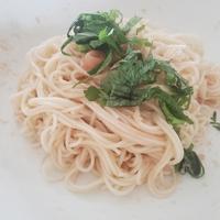 皆さんの投稿で引っ付いて食べにくかったと拝見したので、少しバターを溶かしておき、そうめんも茹でて水洗いする前のものを少し入れ混ぜておき、残りは水洗いしたものを入れました!少しオリーブオイルを入れ混ざりをよくしました。大葉が良いアクセントになり美味しかったです。·͜·。