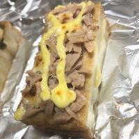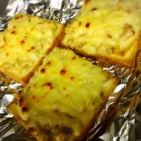 トースターの高さがないので四切りにしてツナマヨとチーズをのせて焼きました!