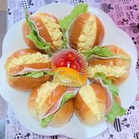 たまごはたっぷり挟んでください。また、ゆで卵は今回は固茹でに仕上げていますが、半熟に仕上げると卵の味をより感じることができます。味付けはマヨネーズではなく塩こしょうで調えてくださいね。ロールパンではなく、食パンやサンドイッチ用食パンでもオススメです。
