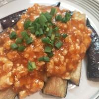なすの鶏ひき肉そぼろあんかけのご紹介です。ごま油で香ばしく揚げ焼きにしたナスに、コチュジャンで甘辛く仕上げた鶏そぼろのあんかけを合わせました。とてもおいしいので、ぜひお試しくださいね。