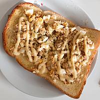 ツナとゆで卵の簡単トーストのご紹介です。ツナとゆで卵を混ぜ合わせて食パンにのせ、マヨネーズをかけて焼くだけです。さっとお作りいただけますので、忙しい朝にもぴったりですよ。ぜひお試しくださいね。