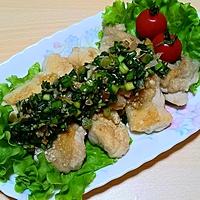 カリカリだけどしっとりなお肉に、香味野菜のタレが合います!