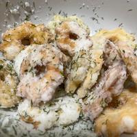 - 3 鍋底から5cm程の高さまで揚げ油を注ぎ、170℃に温め、2をカラッとするまで3分程揚げ、油切りをします。
