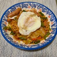 目玉焼きのせ ナポリタン風焼きそば レシピ・作り方