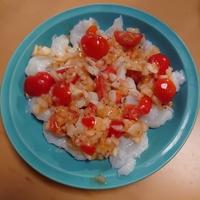 ハーブソルト→普通の塩出作りました。タコ無かったので、帆立とマグロで作りました。